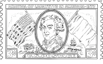 This stamp honors Revolutionary War hero Marquis de Lafayette