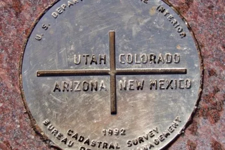Four Corners in an area of the American southwest, in which the states of Utah, Colorado, Arizona, and New Mexico all meet. Visitors can position themselves to be in all four states at one time. It is the only place in America where four states meet. |