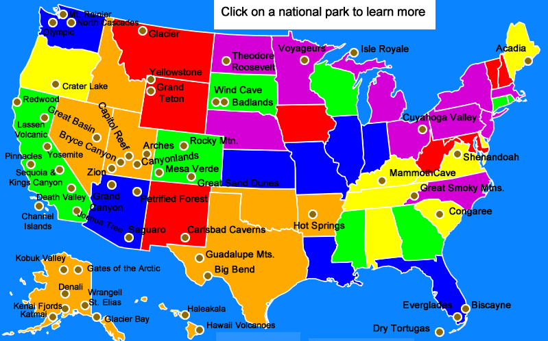 American National ParksClick on a park labeled on the map above to learn more about each park.