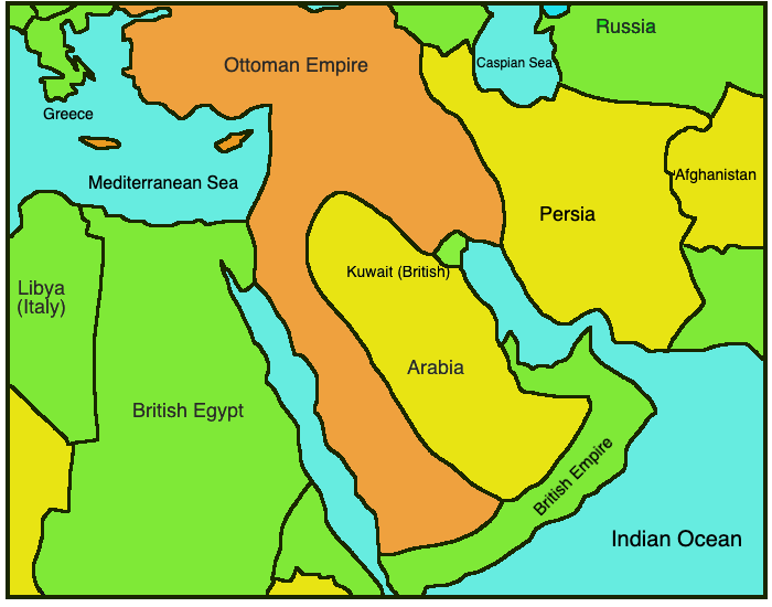 The Ottoman Empire, which was allied with Germany and Austria-Hungary, controlled much of the Middle East at the beginning of the war. The empire was vast, encompassing present-day Turkey, the Levant, Iraq, and much of the Arabian Peninsula. The British Empire, which had a number of interests in the region, including the Suez Canal and access to oil fields, saw the Ottoman Empire as a threat to its imperial power.